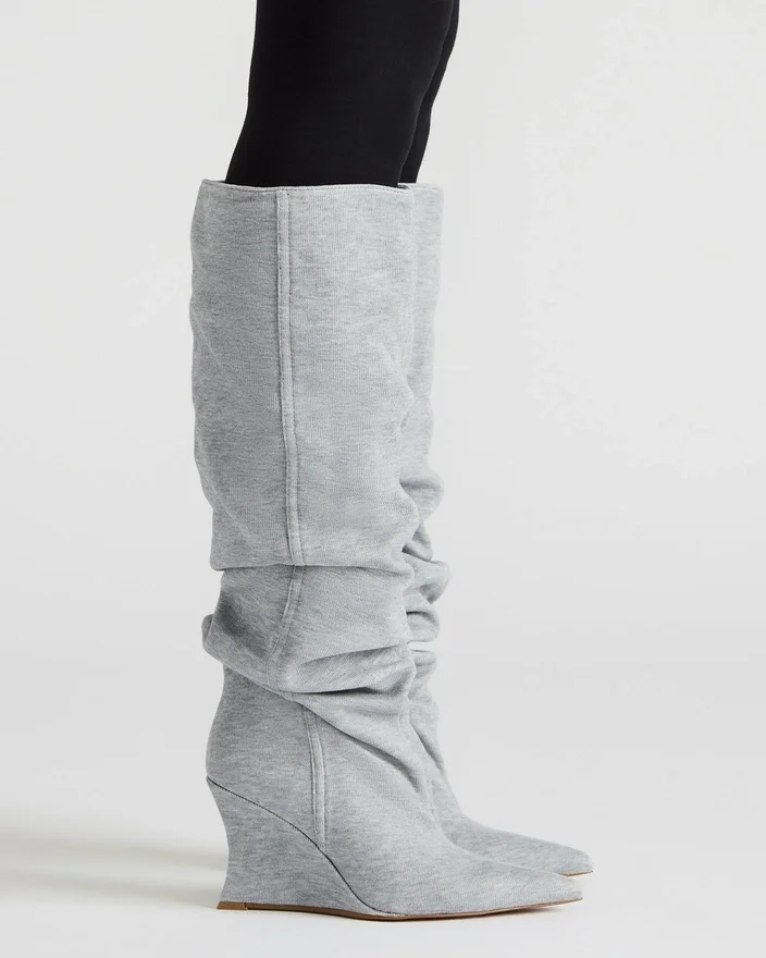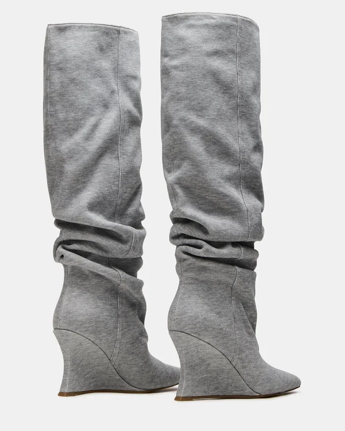 Lo stivale Distortion presenta un design arricciato, tacco a zeppa e punta affusolata, che arriva all’altezza del ginocchio per una silhouette audace e all’avanguardia. Realizzato per combinare uno stile grintoso con il comfort, questo stivale valorizza qualsiasi outfit con il suo design elegante e il caratteristico supporto a zeppa. Ideale per chi cerca un capo di tendenza che bilancia moda e praticità.