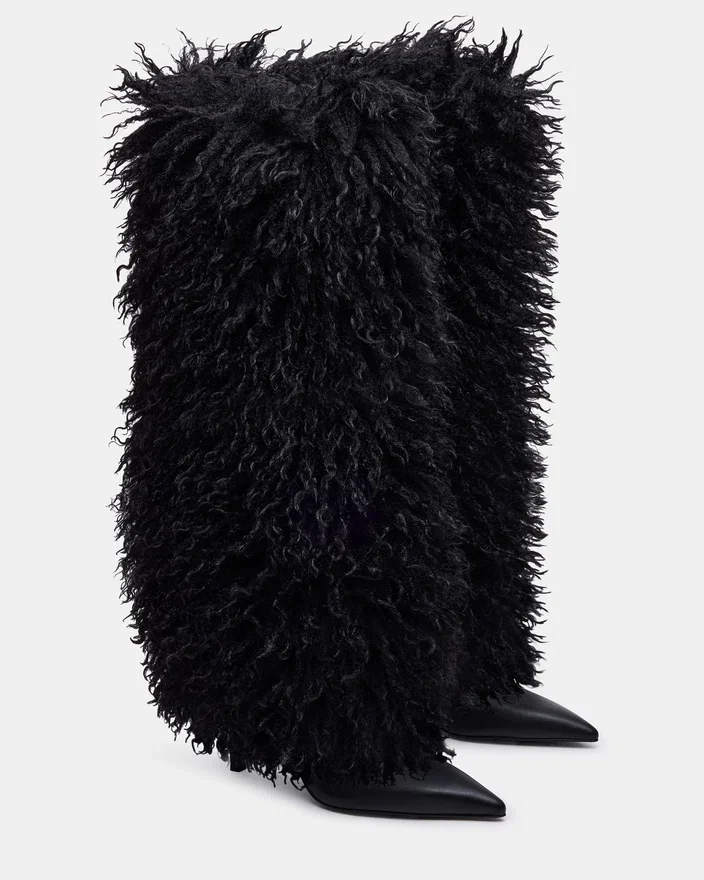 Scopri uno stile elegante e audace con Icon. Con tacco a spillo e risvolto in pelliccia sintetica, questi stivali al ginocchio sono perfetti per aggiungere un tocco di glamour a qualsiasi outfit. Il design a punta aggiunge un tocco chic, rendendo questi stivali un must-have per ogni amante delle scarpe alla moda.