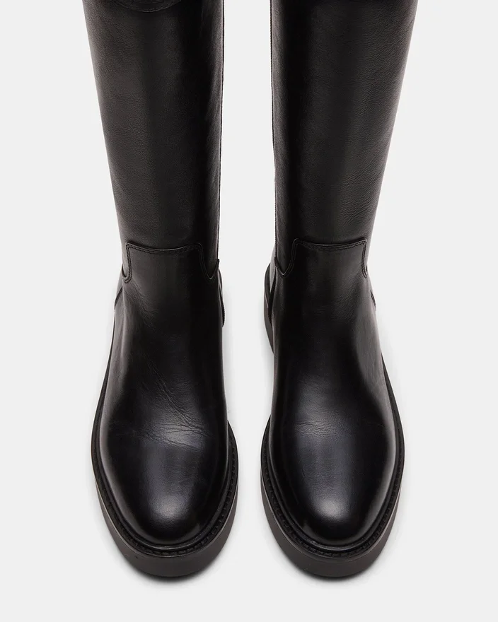 Realizzati con materiali di prima qualità, gli stivali da equitazione alti fino al ginocchio in pelle nera Radke presentano una punta arrotondata per un comfort classico e uno stile slanciato. La loro silhouette alta offre protezione e sostegno, rendendoli ideali per l’equitazione o per valorizzare i look di tutti i giorni con una finitura esperta. La struttura resistente garantisce una lunga durata mantenendo un fascino raffinato.