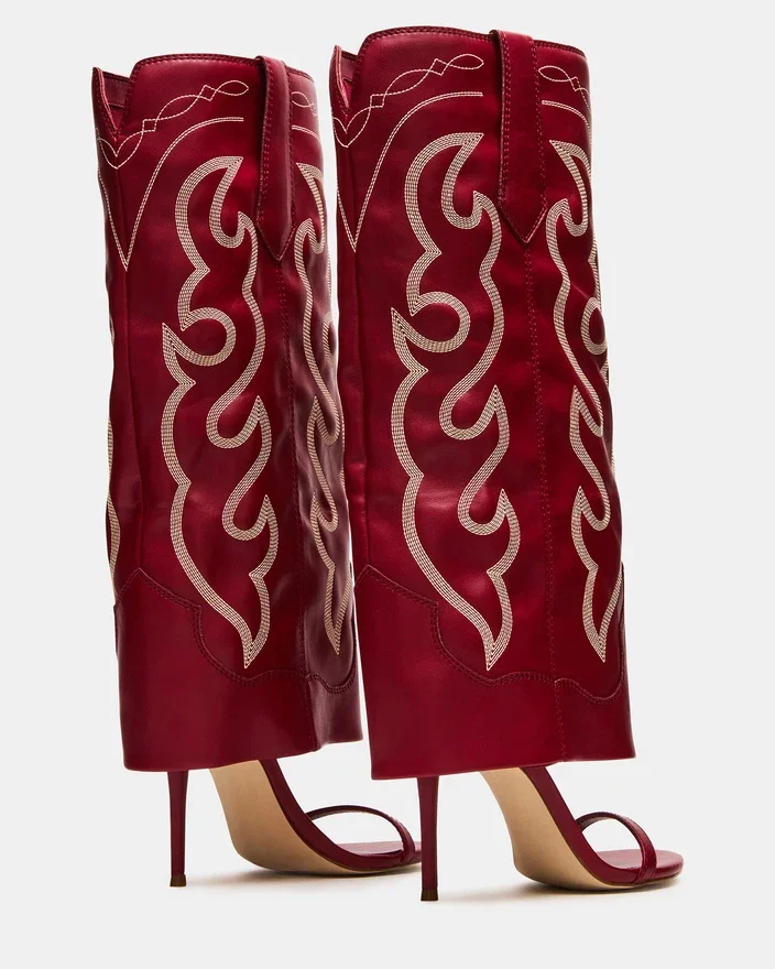 Realizzato e progettato con maestria, lo stivale al ginocchio con risvolto Ravine Western Red presenta punta aperta e tacco a spillo per un tocco di stile. La punta arrotondata offre comfort mentre il design elegante aggiunge un tocco di raffinatezza. Migliora il tuo look con questo stivale imperdibile.