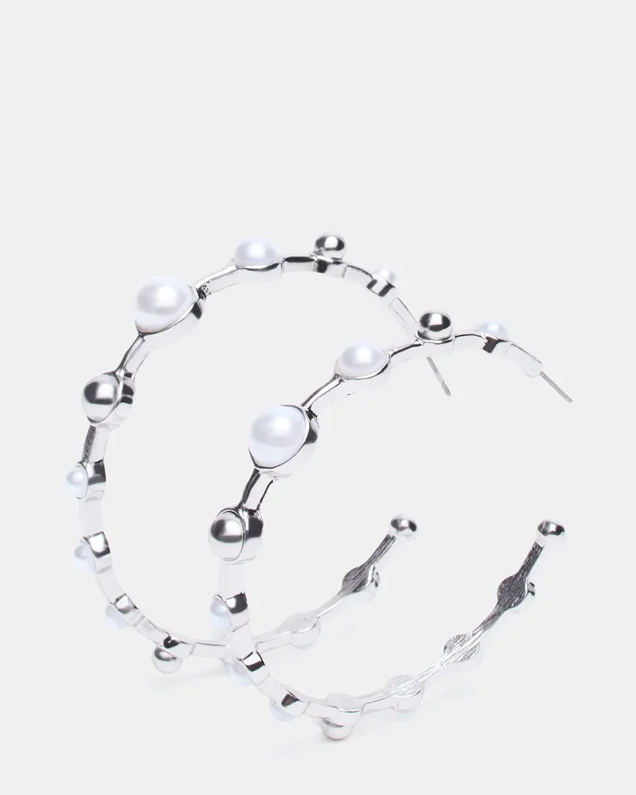 Arricchisci la tua collezione di gioielli con questi sofisticati orecchini a cerchio con perle in argento, sapientemente realizzati con materiali lucenti. Le perle sono sospese all’interno di cerchi in argento lucido, creando una silhouette raffinata che si adatta perfettamente sia al look da giorno che a quello da sera. Questa combinazione intramontabile di perle classiche e stile contemporaneo a cerchio offre un’eleganza versatile per ogni occasione.