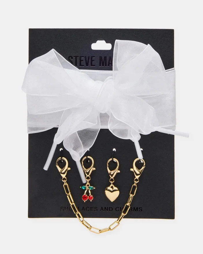 Questi eleganti lacci per scarpe e ciondoli sono gli accessori perfetti per qualsiasi scarpa. Decorati con un grazioso ciondolo a forma di cuore e uno a forma di ciliegia, aggiungono un tocco di femminilità al tuo look. Il fiocco aggiunge un dettaglio affascinante, facendoti risaltare in qualsiasi folla. Migliora il tuo stile con questi eleganti lacci per scarpe e ciondoli.