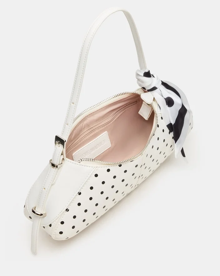 La borsa Roxey Bag Dots combina un design sofisticato con una funzionalità pratica. Questa borsa a spalla a forma di mezzaluna è dotata di una chiusura superiore con cerniera di sicurezza e viene fornita con una sciarpa annodata agganciabile per opzioni di styling versatili. L’organizzazione interna è migliorata grazie a scomparti dedicati sia sul pannello posteriore che su quello anteriore, garantendo che i tuoi oggetti essenziali rimangano organizzati e accessibili. La silhouette raffinata la rende un’aggiunta perfetta a qualsiasi guardaroba, passando senza soluzione di continuità dall’abbigliamento da giorno a quello da sera.