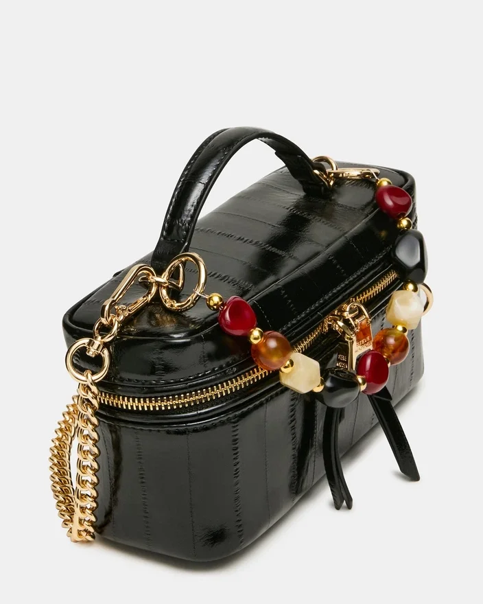 La Herra Bag Black Eel è una borsa a mano versatile, pensata per un’eleganza quotidiana. Caratterizzata da un’accattivante tracolla con perline e da un manico superiore, questo modello si adatta perfettamente sia al giorno che alla sera. La tracolla rimovibile offre diverse opzioni di trasporto, mentre la chiusura con cerniera sicura protegge i tuoi oggetti essenziali. Perfetta per chi apprezza sia lo stile che la funzionalità nei propri Accessori.