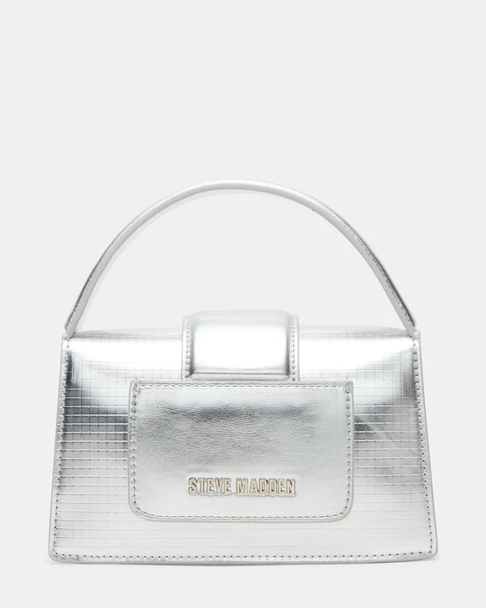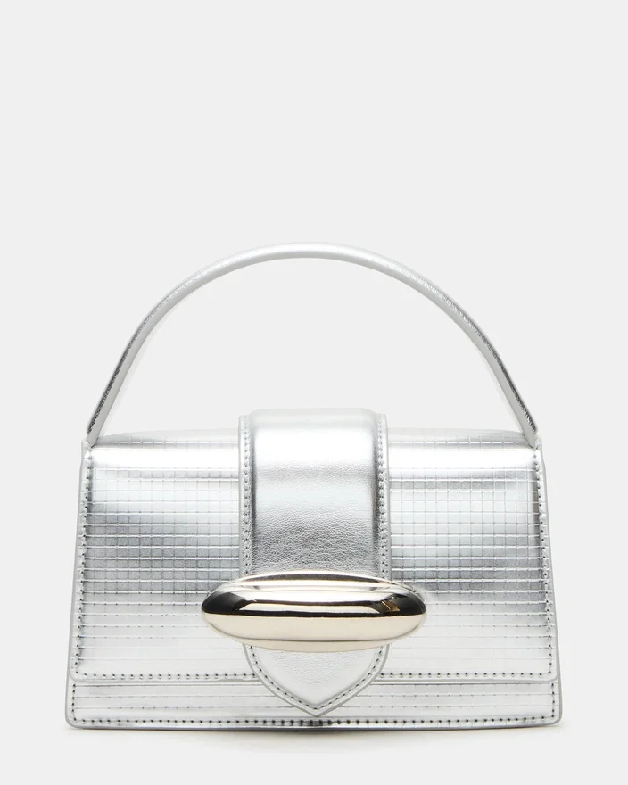 Questa borsa Mishell Silver Disco è una micro mini borsa con manico superiore dalla forma trapezoidale che passa con disinvoltura dal giorno alla sera. Perfetta per uscire, questa borsa è un must-have per feste ed eventi. Con il suo stile elegante e chic, farai sempre una dichiarazione di moda.