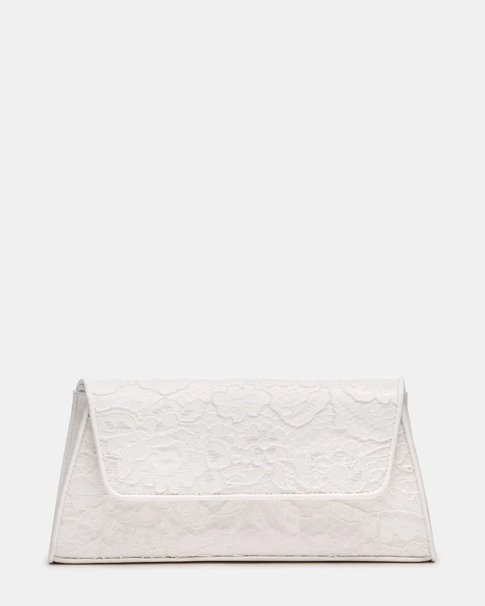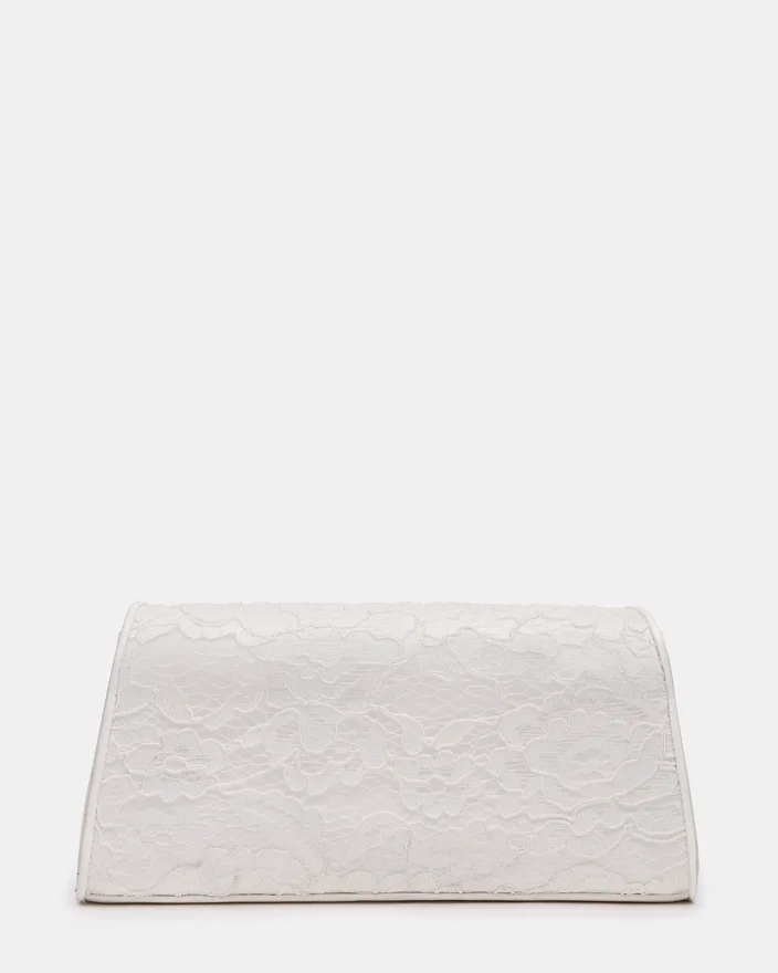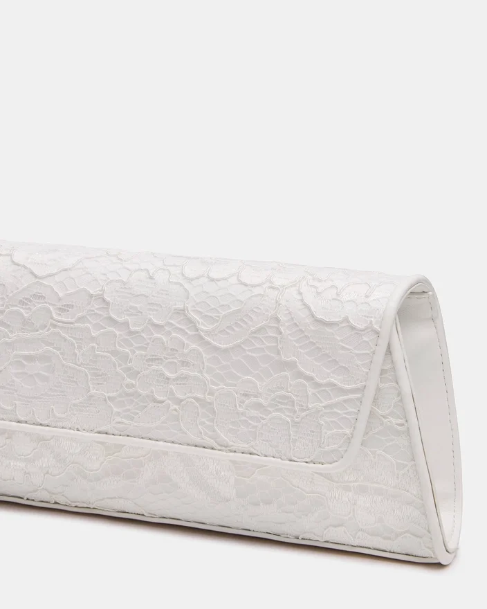 Rendi speciale la tua serata con questa sofisticata pochette Avant Bag White Lace, caratterizzata da una silhouette trapezoidale distintiva impreziosita da dettagli di bordatura alla francese. Il classico design con patta frontale si chiude con un bottone a scatto magnetico, mentre l’interno organizza gli oggetti essenziali con appositi scomparti per carte. Passa senza soluzione di continuità da pochette a borsa a tracolla grazie alla tracolla a catena rimovibile, che offre uno stile versatile per ogni occasione. Realizzata con lussuosi materiali da sera in pizzo, questa borsa offre un glamour raffinato e un’eleganza pratica.