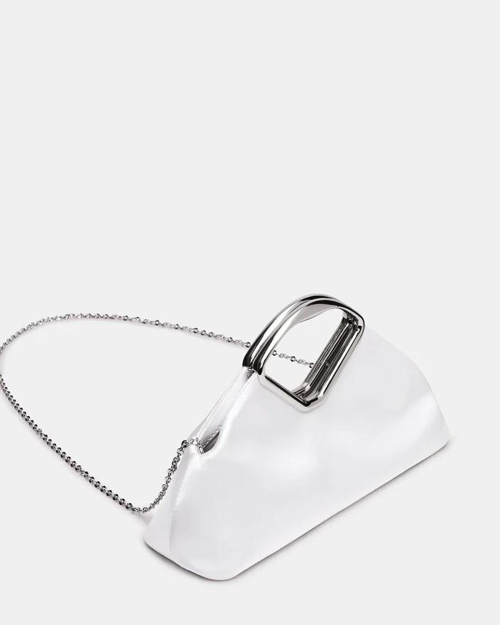 La borsa Barbara bianca unisce un’eleganza raffinata a una praticità sofisticata. Questa pochette presenta una silhouette morbida e arrotondata con linee pulite e contemporanee, realizzata in tessuto di lusso con una sensazione al tatto eccezionale. Le finiture in metallo personalizzate offrono comfort ergonomico e uno stile distintivo, mentre la chiusura a scatto magnetica garantisce una chiusura sicura. Lo scomparto interno per carte mantiene in ordine gli oggetti essenziali, mentre la tracolla a catena rimovibile offre opzioni di styling versatili: portala come pochette o indossala a mano libera. Un pezzo intramontabile che passa senza soluzione di continuità dal giorno alla sera.