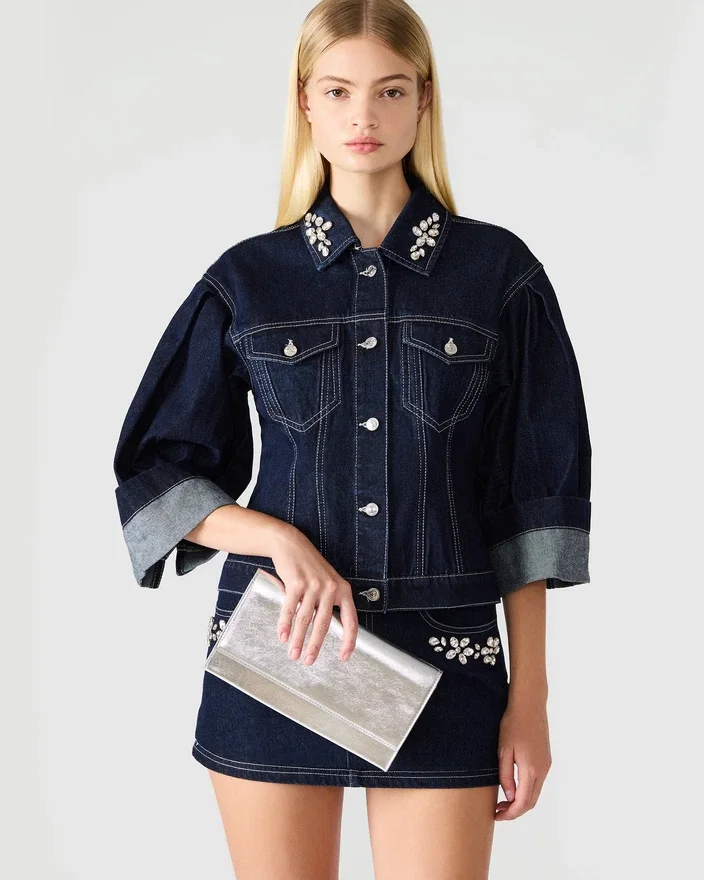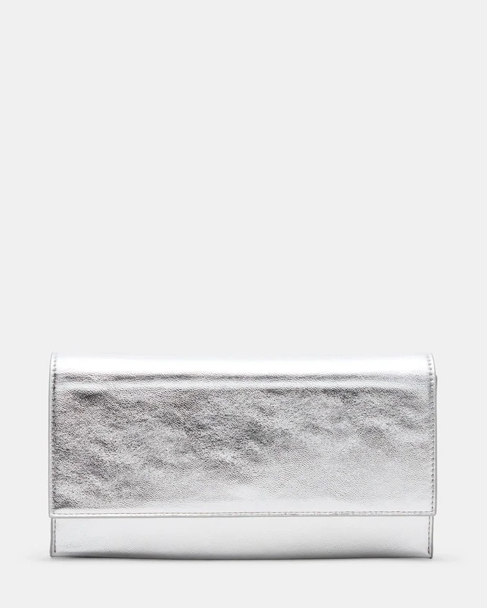 Realizzata con maestria e versatile, la borsa Juliana Silver è un capo essenziale del guardaroba. Il design a pochette offre praticità e stile, con chiusura a scatto magnetico e tracolla a catena rimovibile. La tasca interna sul retro può contenere carte di credito e oggetti di valore, rendendola perfetta per ogni occasione.
