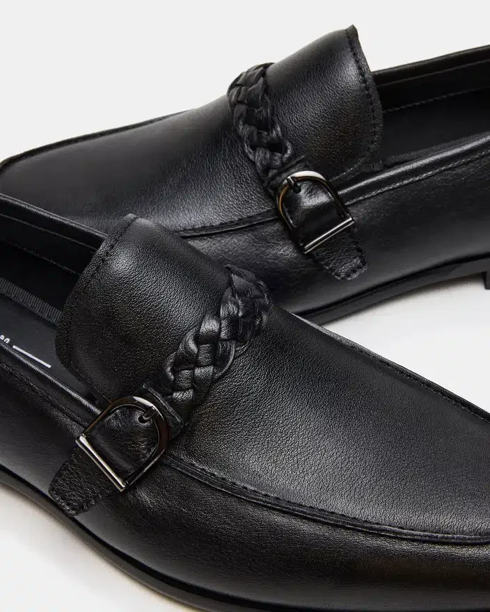 Il modello Chaplin in pelle nera combina lo stile intramontabile del Mocassino con un caratteristico dettaglio a cinturino intrecciato che esalta la silhouette classica. Questo modello slip-on offre una raffinatezza disinvolta ed è pensato sia per un uso quotidiano versatile che per occasioni eleganti. Una scelta raffinata per chi apprezza l’eleganza sobria con elementi di design curati.
