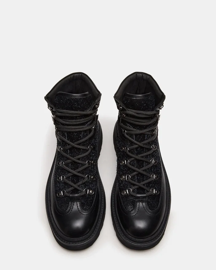 Lo stivale stringato Yosemite Black Multi Lug combina una robusta resistenza con uno stile raffinato. La sua robusta suola con tacchetti offre trazione e stabilità affidabili, ideali per vari terreni e condizioni meteorologiche. Il design allacciato garantisce una calzata sicura, mentre la finitura multicolore aggiunge un fascino versatile e contemporaneo.